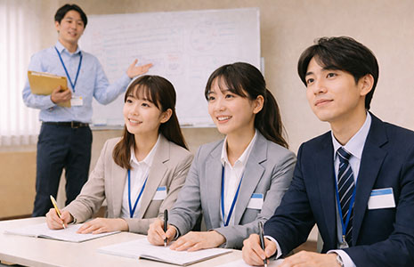 研修の節目ごとに動画や音声で記録し、一定期間後に配信。自分の変化を客観的に見返すことで、継続的な成長を促します。